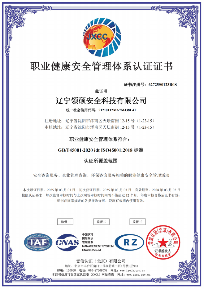 遼寧領碩安全科技有限公司位于遼寧省沈陽市渾南區天壇南街12-15號,注冊資金300萬。主要經營范圍為遼寧省范圍內的安全環保咨詢,生產安全事故應急預案技術服務、企業雙重預防機制建立、履職能力評估、企業科研項目安全部分服務等的技術服務機構。現有員工12人,其中包括5名遼寧省級安全生產專家。成立于2022年4月18日,在盤錦市成立至今已經為30余家企業提供了安全環保技術咨詢。 業務范圍包括:技術服務、技術開發、技術咨詢、技術交流、技術轉讓、技術推廣,安全咨詢服務,環保咨詢服務,標準化服務,企業管理咨詢,科技中介服務,工程管理服務,特種作業...查看更多